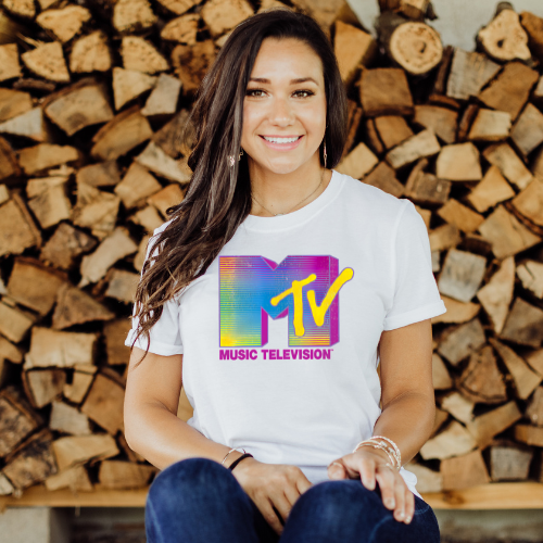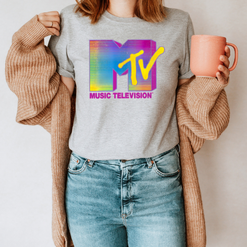 Bring the energy of 90s music television to your everyday wardrobe. This lightweight tee is soft, comfortable, and relaxed fit for layering or wearing on its own. Perfect for retro lovers who want playful style with a cosy feel.