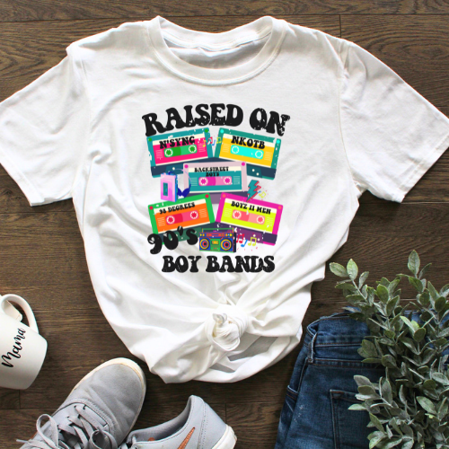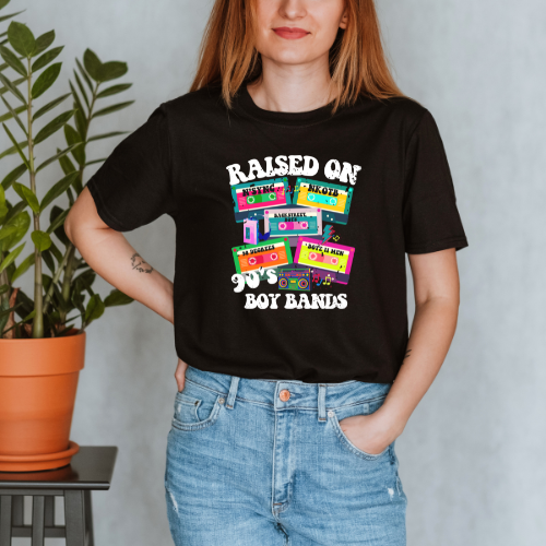 For the 90s kids who still know every BSB lyric by heart. This soft, breathable tee features neon cassette tapes and icons of Backstreet Boys, NSYNC, 98 Degrees and Boyz II Men. Perfect for nostalgic weekends, casual outings, or pairing with your favourite jeans or leggings. Nostalgia never looked so cosy.