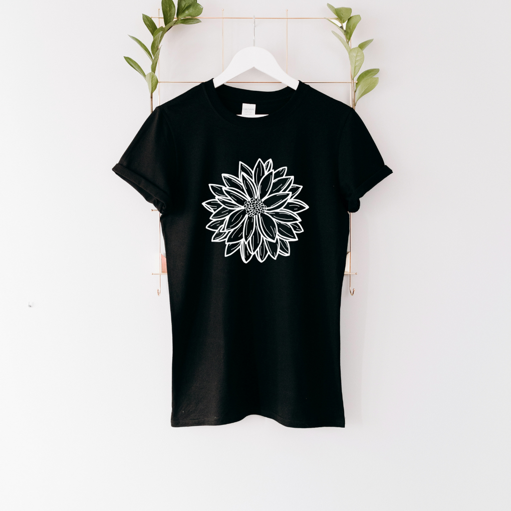 Pretty and simple t-shirt with oversized Dahlia flower.