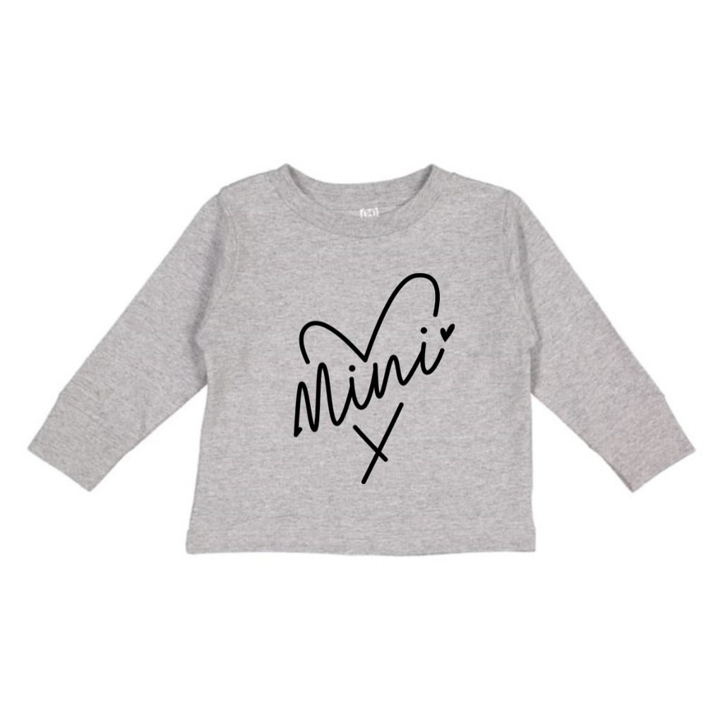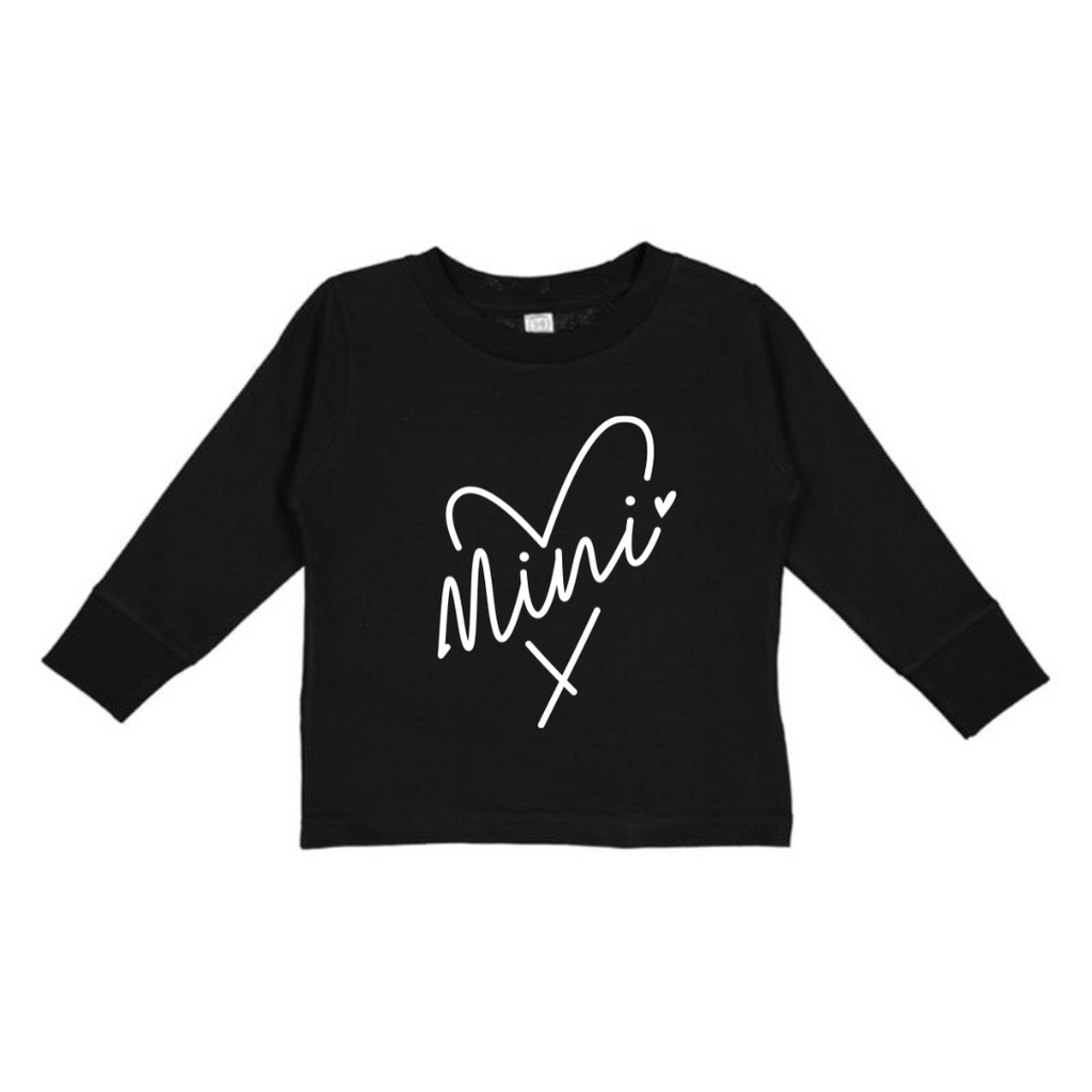 Matching the Mama heart tee, for your mini! This long sleeve shirt is 100% jersey cotton with ribbed crew neck and cuffs. Fits true to size.